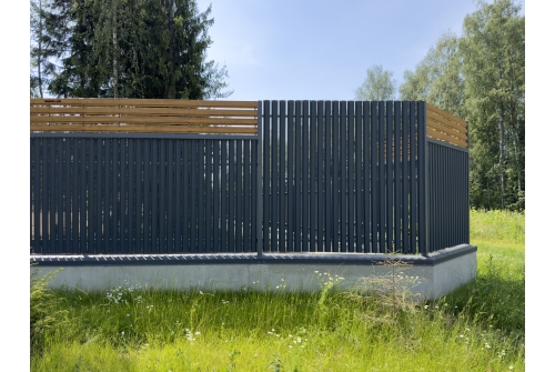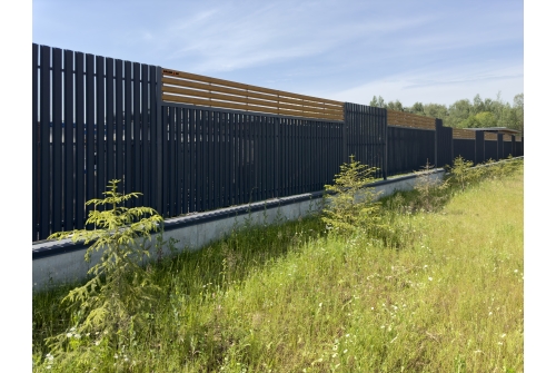 Ограждение такого типа визуально обладает легкостью, оно продуваемо, не обладает парусностью, оставляет участок частично открытым, но при этом максимально защищённым.