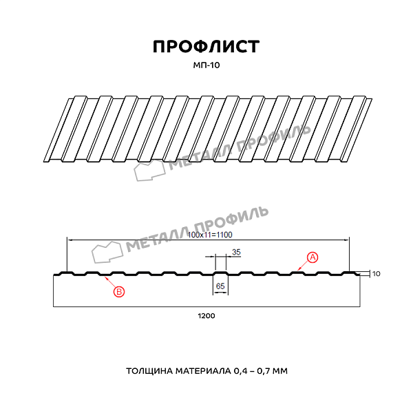 Профилированный лист МП-10x1100-B NormanMP (ПЭ-01-RR32-0,5)